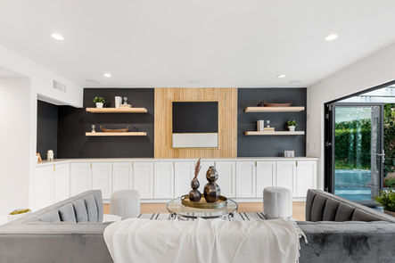 This Encino home remodel involved a complete transformation designed to modernize the layout and dramatically enhance the sense of space and light throughout the home. One of the most impactful improvements was vaulting the low ceilings in the living room, creating a grand, open atmosphere that completely changed the feel of the main living area. We also removed and reconfigured several interior walls to improve flow between the living spaces, creating a more functional open-concept floor plan ideal for modern living and entertaining. Large bi-fold glass doors were installed to connect the interior living space to the backyard, creating a seamless indoor-outdoor living experience that is highly sought after in Southern California homes.